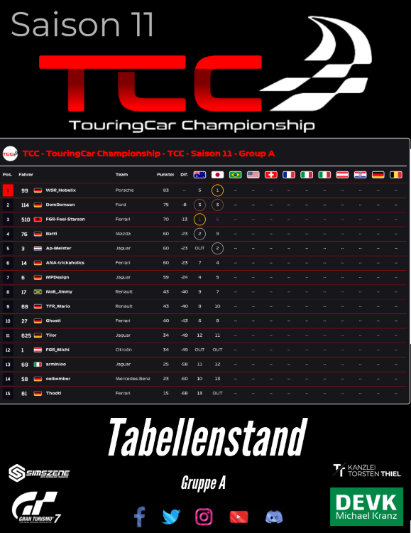 Bevor die TouringCar Championship Liga heute (23.10.2025) in das dritte Rennen startet, lohnt es sich nochmal einen Blick auf den Tabellenstand der beiden Gruppen und das letzte Rennen in Suzuka zu werfen.